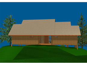La estructura de muros es de tabiquería de pino revestida exteriormente con siding de fibrocemento imitando madera nativa tanto en su textura como en su color e interiormente con madera de pino tinglado. Piso y cielo interior de madera con vigas de Roble a la vista. Todas las ventanas y puerta principal de Raulí con quincallería embutida de cierre hermético. Cubierta de tejuela asfáltica clasic gris oscura.